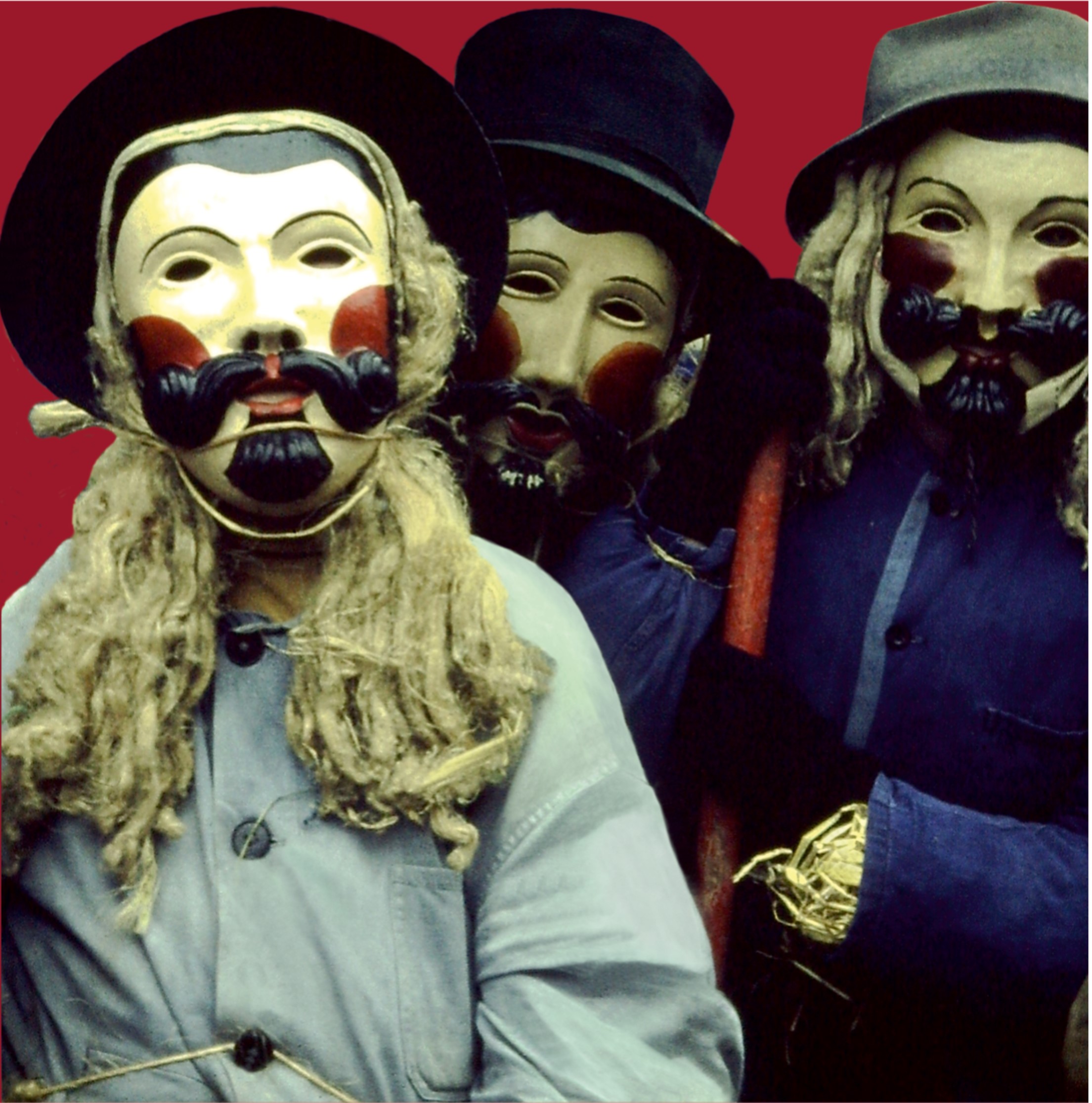 Tatsächlich ist die Rhön die nördlichste Region, in der seit Mitte des 19. Jahrhunderts Holzmasken getragen werden, angeregt vielleicht durch Händler aus dem Werdenfelser Land. Einer der beliebtesten Maskentypen sind die „Jüde“ mit ihren blauen Arbeitskitteln, die wohl auf das Schauspiel „Der Auszug der Kinder Israel aus Ägypten“ zurückgehen, das von Wandertheatern in ganz Europa aufgeführt wurde. Aber auch die unförmigen Strohmänner, die Spanmänner mit ihren mühevoll mit einzelnen Hobelspänen besteckten Gewändern oder die Unterelsbacher Fosenöchter mit aufwändig bestickten Trachten sind charaktervolle Figuren.