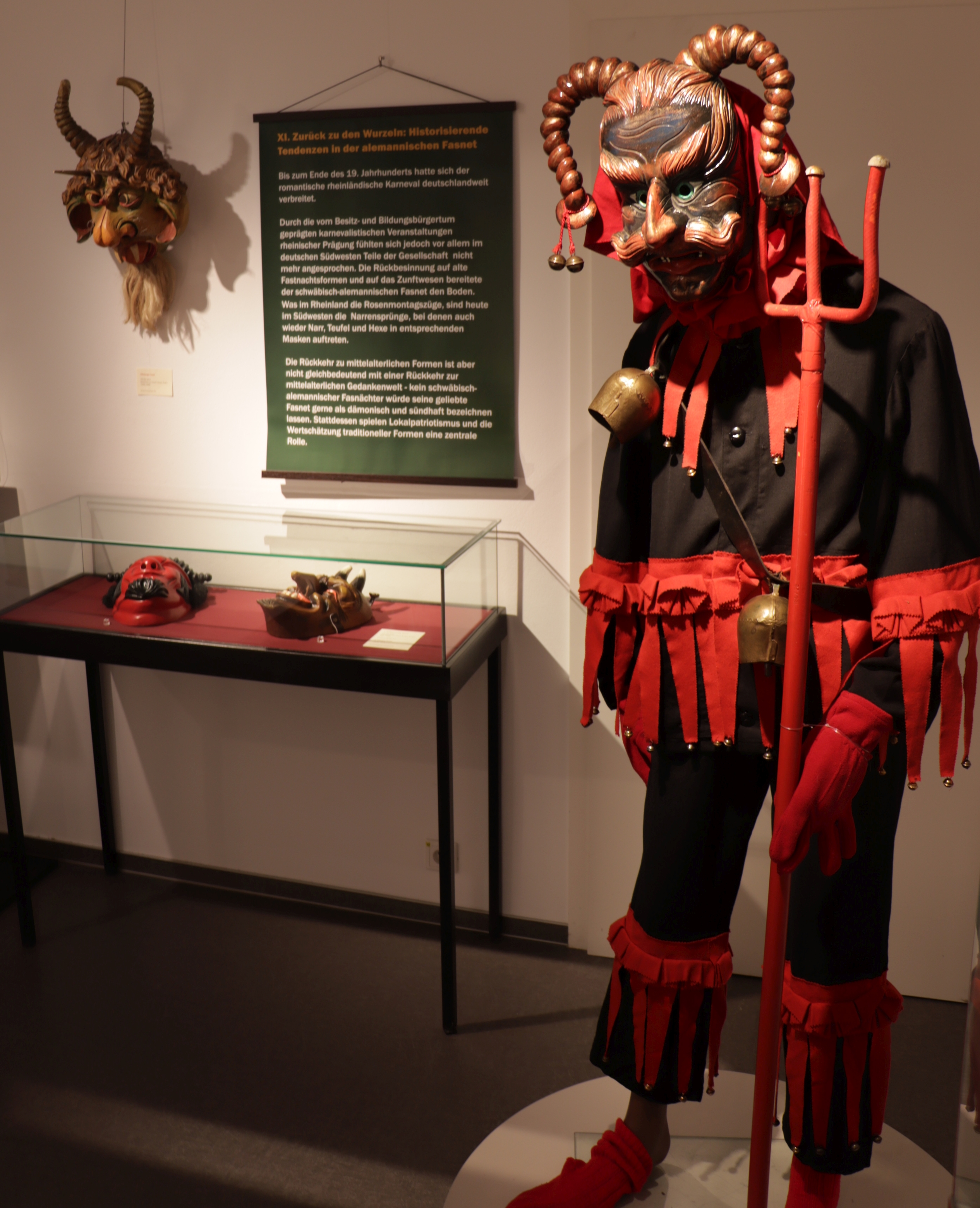 Die Ausstellung „Himmlische Freude – Höllische Lust. Karnevalistische Emotionen im Wandel der Zeiten“ basiert auf den Forschungen des Historikers Dr. Jeremy DeWaal von der britischen Universität Exeter und geht der Frage auf den Grund, inwiefern sich die gesellschaftliche Wertung fastnächtlicher Bräuche, Symbole und Figuren seit dem Mittelalter verändert hat.